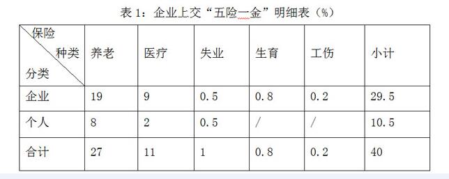 另外,大病保险10月/人?月,住房公积金20~24%(个人与单位各交一半)。也就是不考虑大病保险和住房公积金,“五险”需缴纳工资总额的40%。