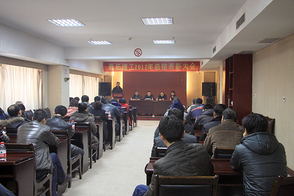 2012年岁尾,嘉拓全体员工在银梦酒店多功能厅召开了“辽阳嘉拓建筑工程有限公司第一届年终总结表彰会”。会议中,公司领导分别对过去一年的工作进行深刻的总结,肯定我们所取得的成绩的同时也指出了我们在工作中所存在的缺陷和不足。此外,会议上还通过集体投票的形式评选出一批优秀的班组及先进个人并予以表彰和颁奖,公司希望以此能够激励所有员工在今后的工作中积极进取,努力工作,充分的展现员工最优秀的一面。 会议整体的氛围非常活跃,大家都能积极踊跃的进行总结并彼此交流自己在工作当中心得体会,本次总结表彰大会取得了圆满的成功,它标志着我们嘉拓公司破除了以往的旧观念,确立了新的目标,向美好的未来迈出了暂新的一步。